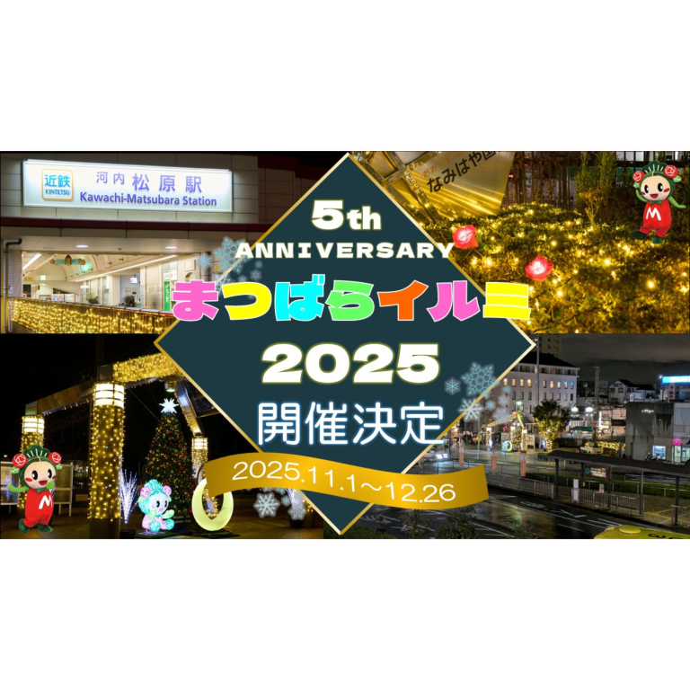 河内松原駅周辺を舞台に、冬の街を彩る恒例イベント「まつばらイルミ」が、2025年も開催されます。今年で5回目を迎える節目の年。松原の夜を華やかに照らす光の演出が、訪れる人々に特別なひとときを届けます。