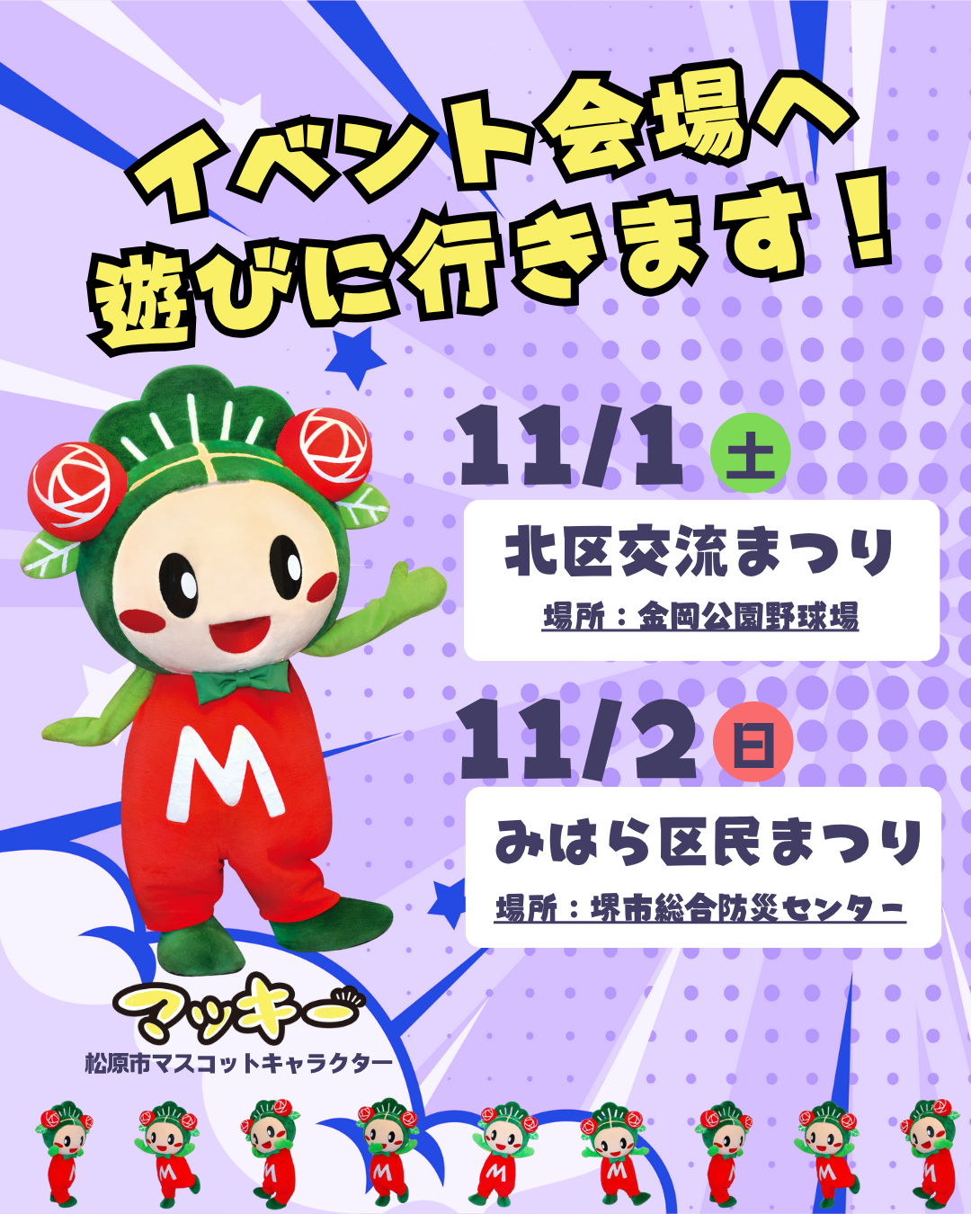 松原市マスコットキャラクター「マッキー」が会場へ遊びに行きます!
