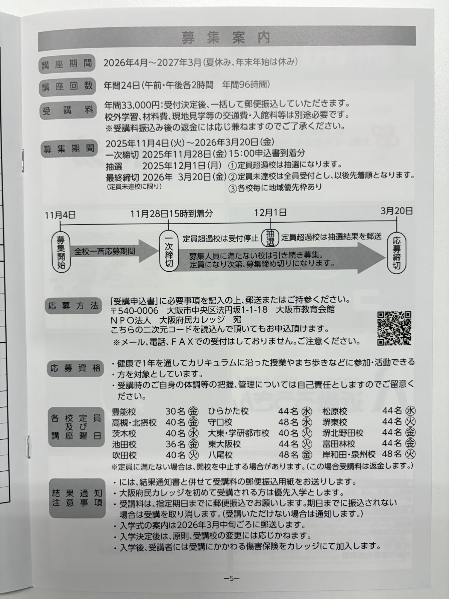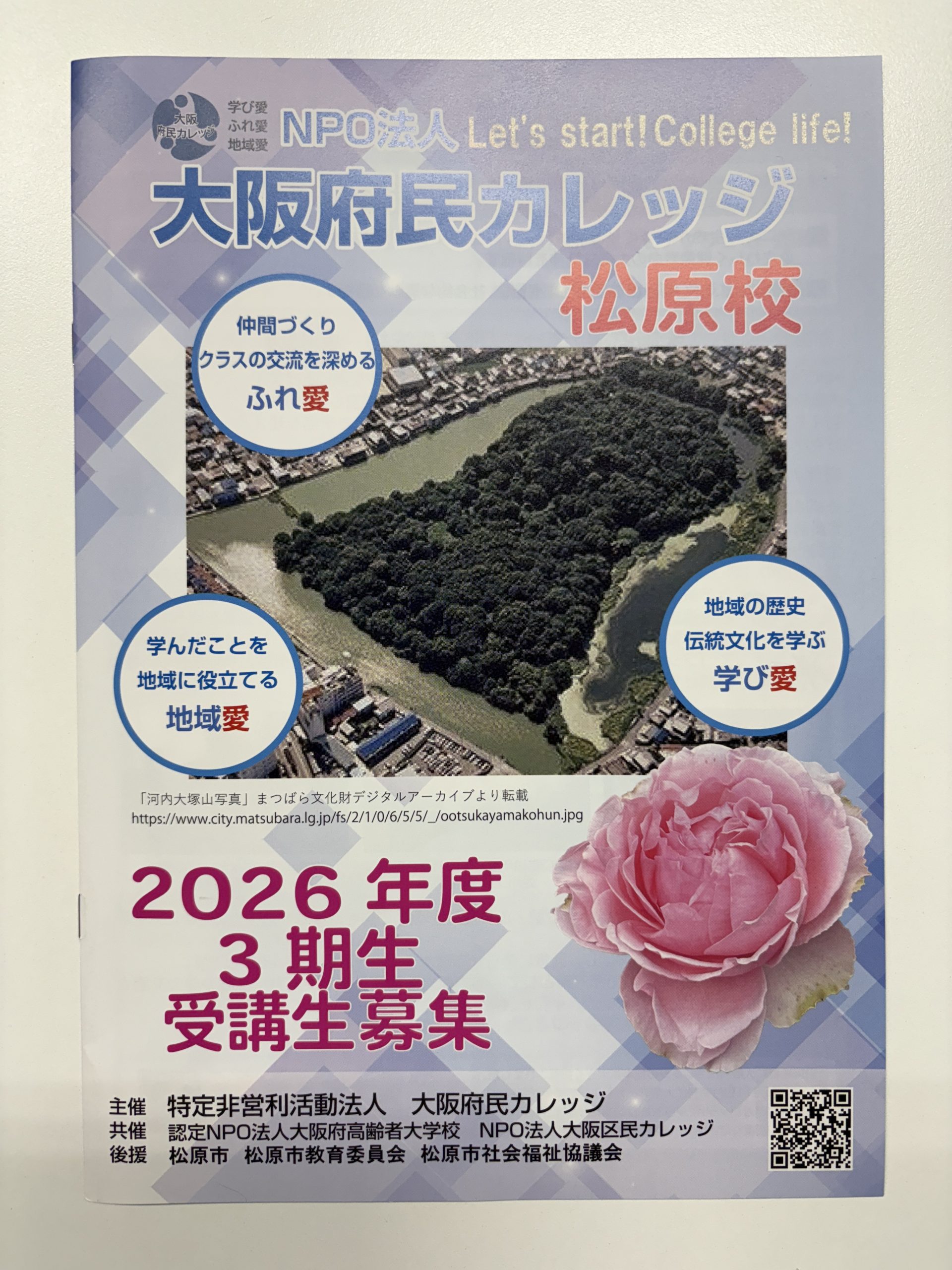 大阪府民カレッジ 松原校の 次年度募集のお知らせです。