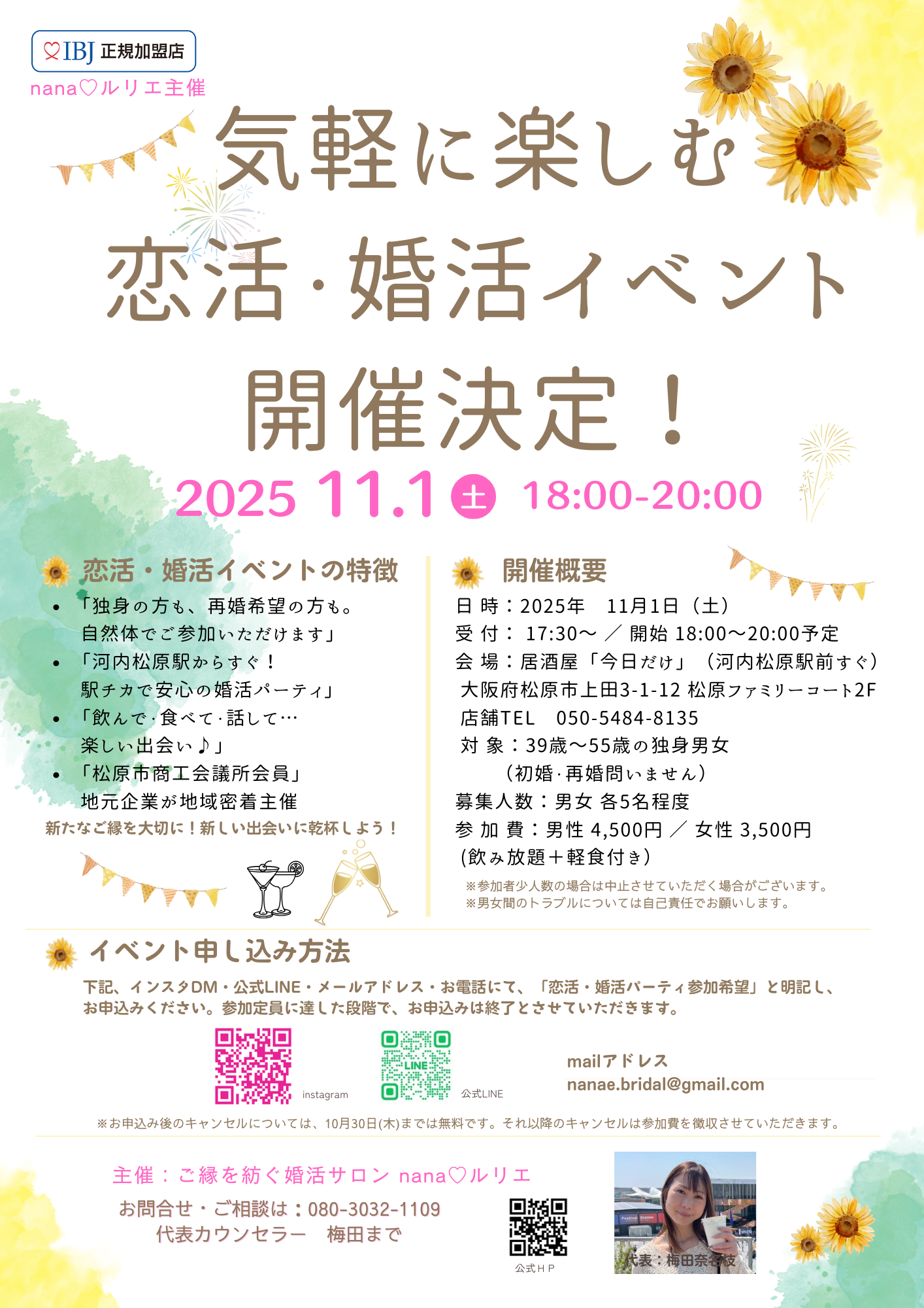 2025年11月1日(土)恋活・婚活イベントを開催します!