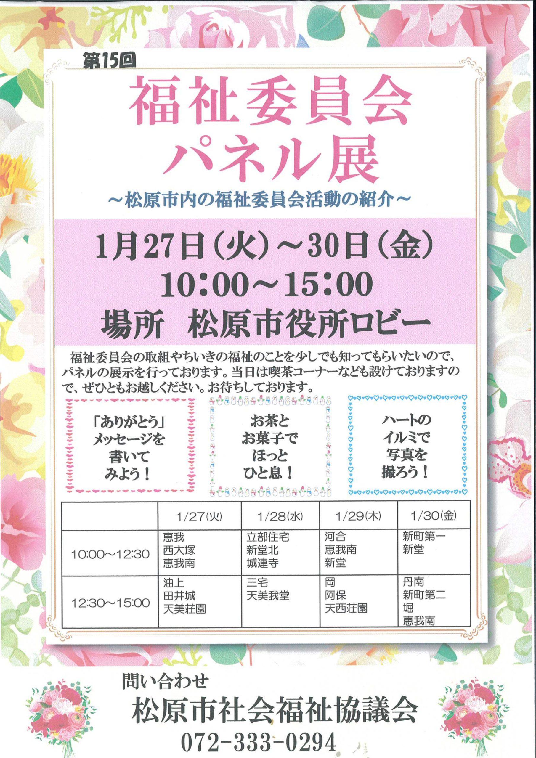 「第15回 福祉委員会パネル展」**が、松原市役所ロビーで開催されます。