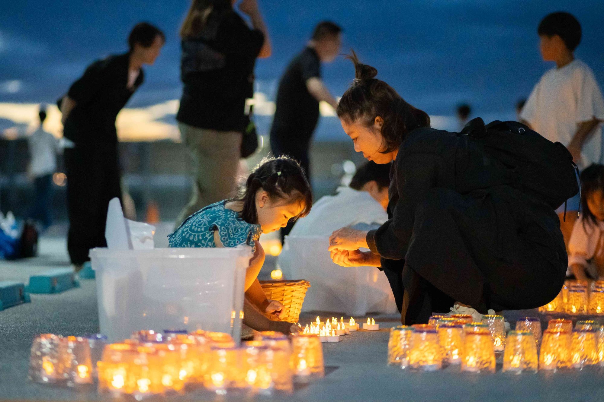 参加者が区画いっぱいにLEDキャンドルを並べ、光のオリジナルアートを制作。個性豊かな作品が会場を幻想的に照らし、一般来場者による投票でグランプリを決定しました。