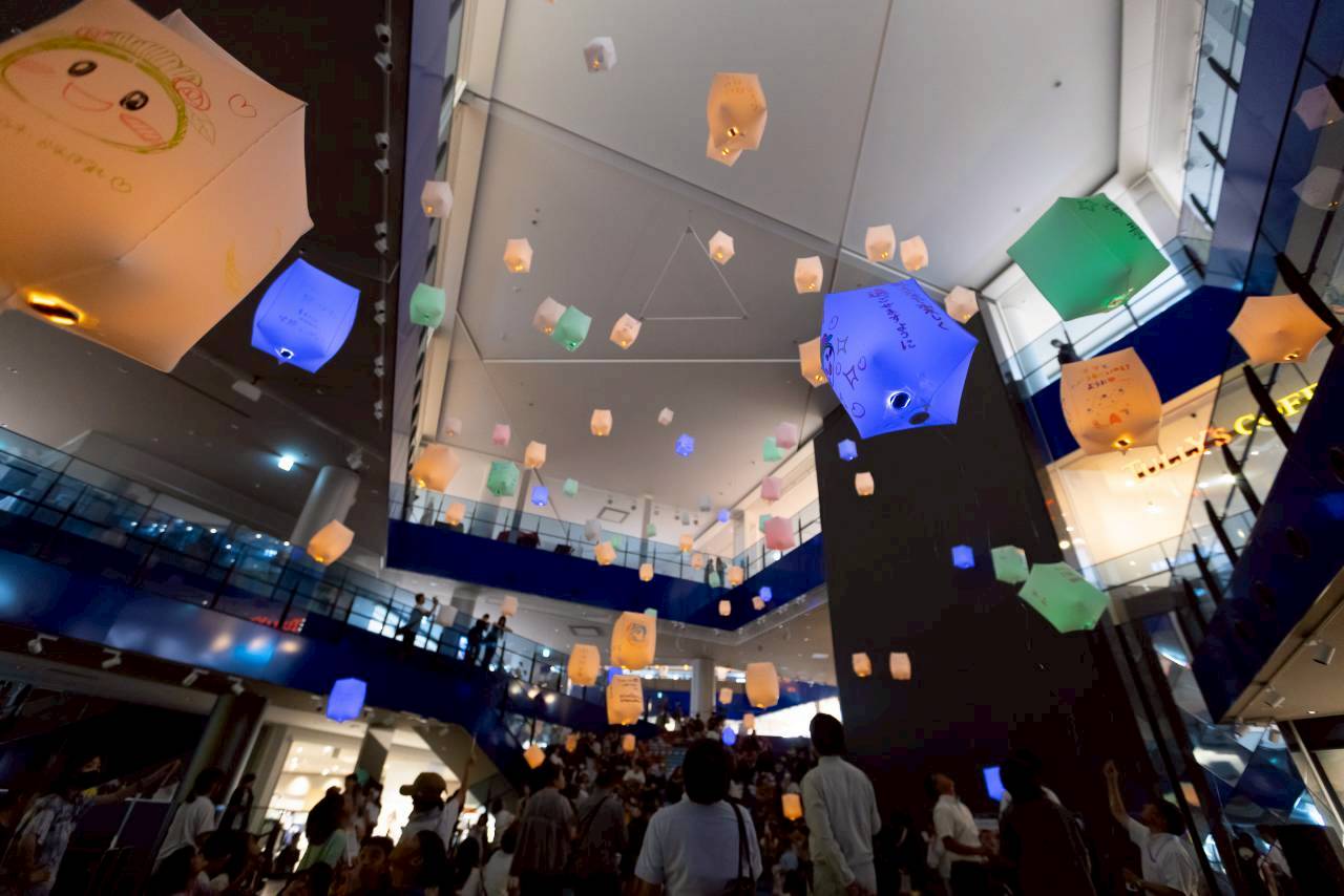 参加者一人ひとりの願いや夢が書かれたランタンが夜空へ昇っていく光景は、まさに圧巻。ランタンの灯りが心を一つにし、まちの未来を照らしているようでした。屋内会場(AMAMI STADIUM)と屋外会場(屋上駐車場)の2ヶ所で行われ、それぞれの会場で違った雰囲気の感動体験となりました。