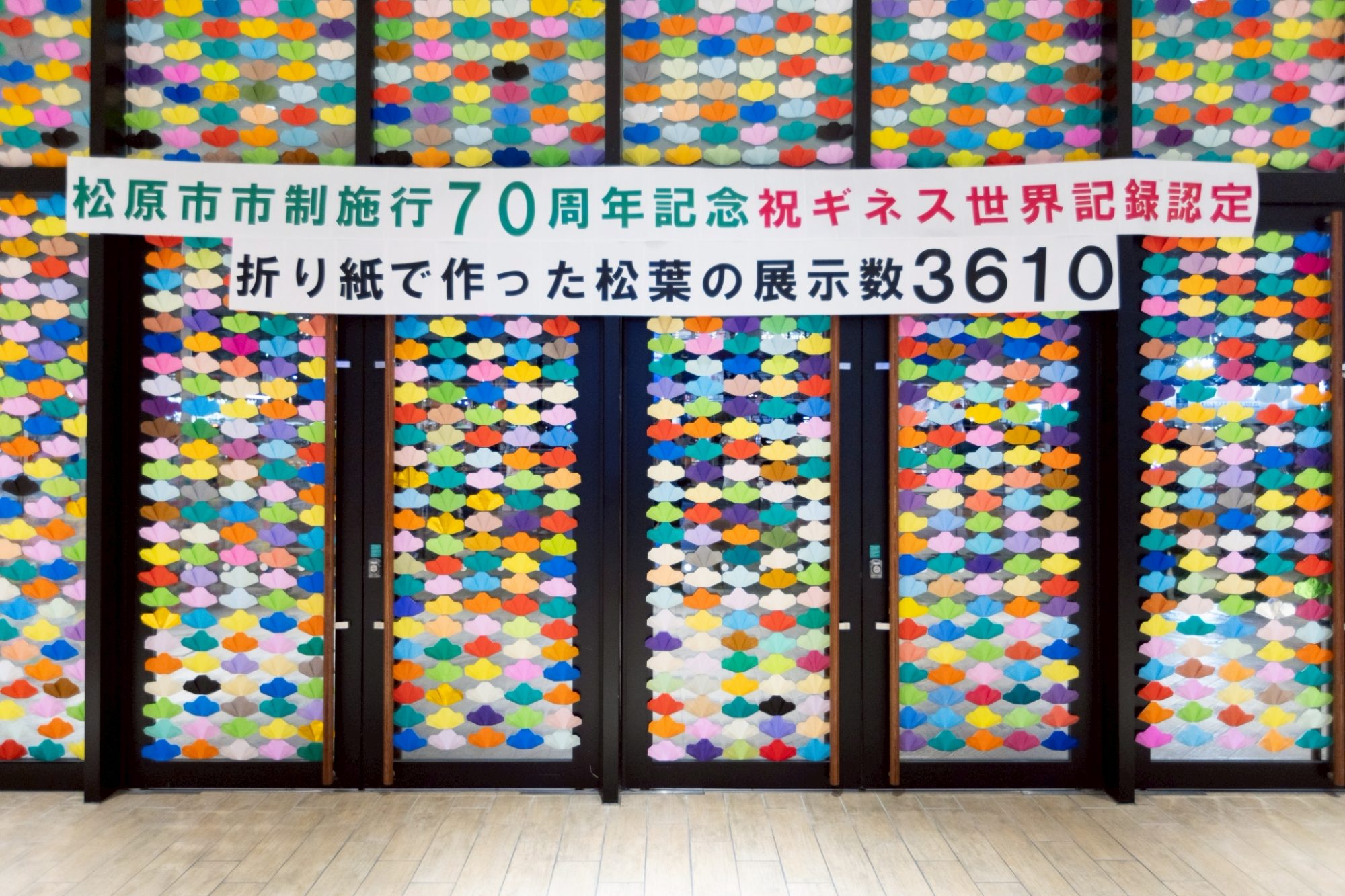 見事、折り紙で作った松葉の展示数「3610」でギネスに認定!たくさんの方と喜びを分かち合いました。