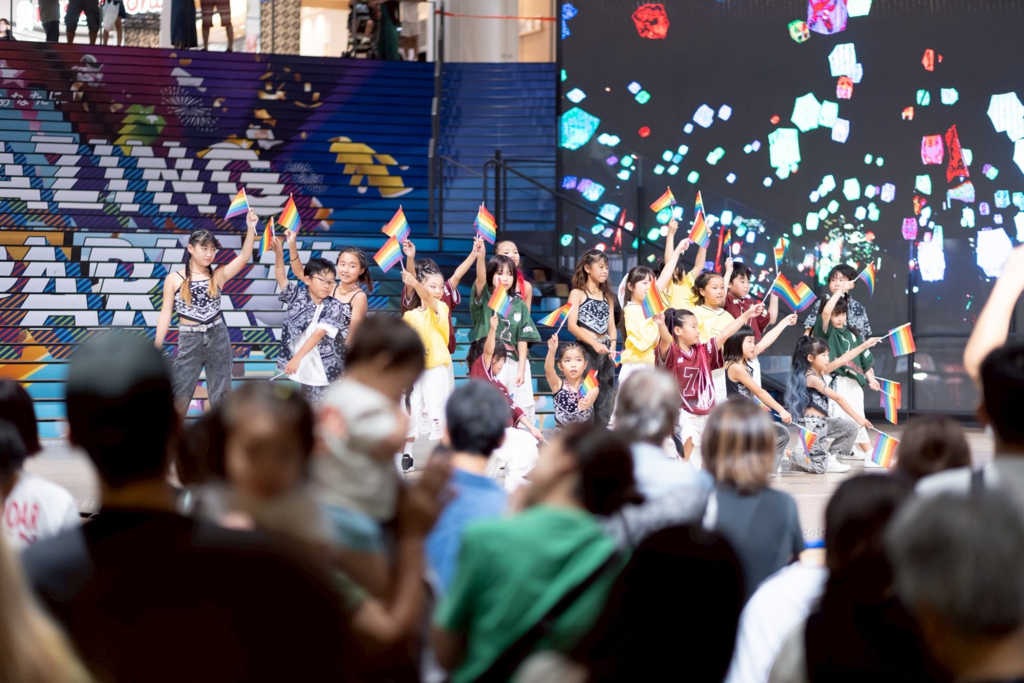 イベントのハイライトは、なんといってもスカイランタンの打ち上げです。70周年のフィナーレにふさわしく、今回は「多様性」をイメージしたレインボーランタンが松原の夜空を美しく彩りました。
