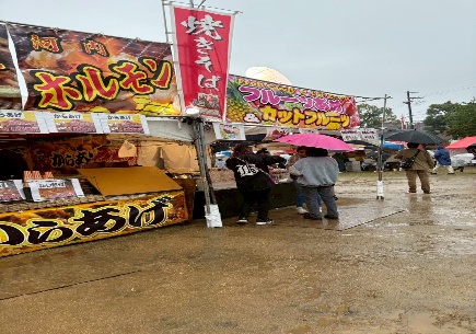 また、屋内外では家族連れが楽しむ姿や、メインステージを観覧する人々の姿も多く見られ、会場は雨を感じさせないほどの活気にあふれていました。