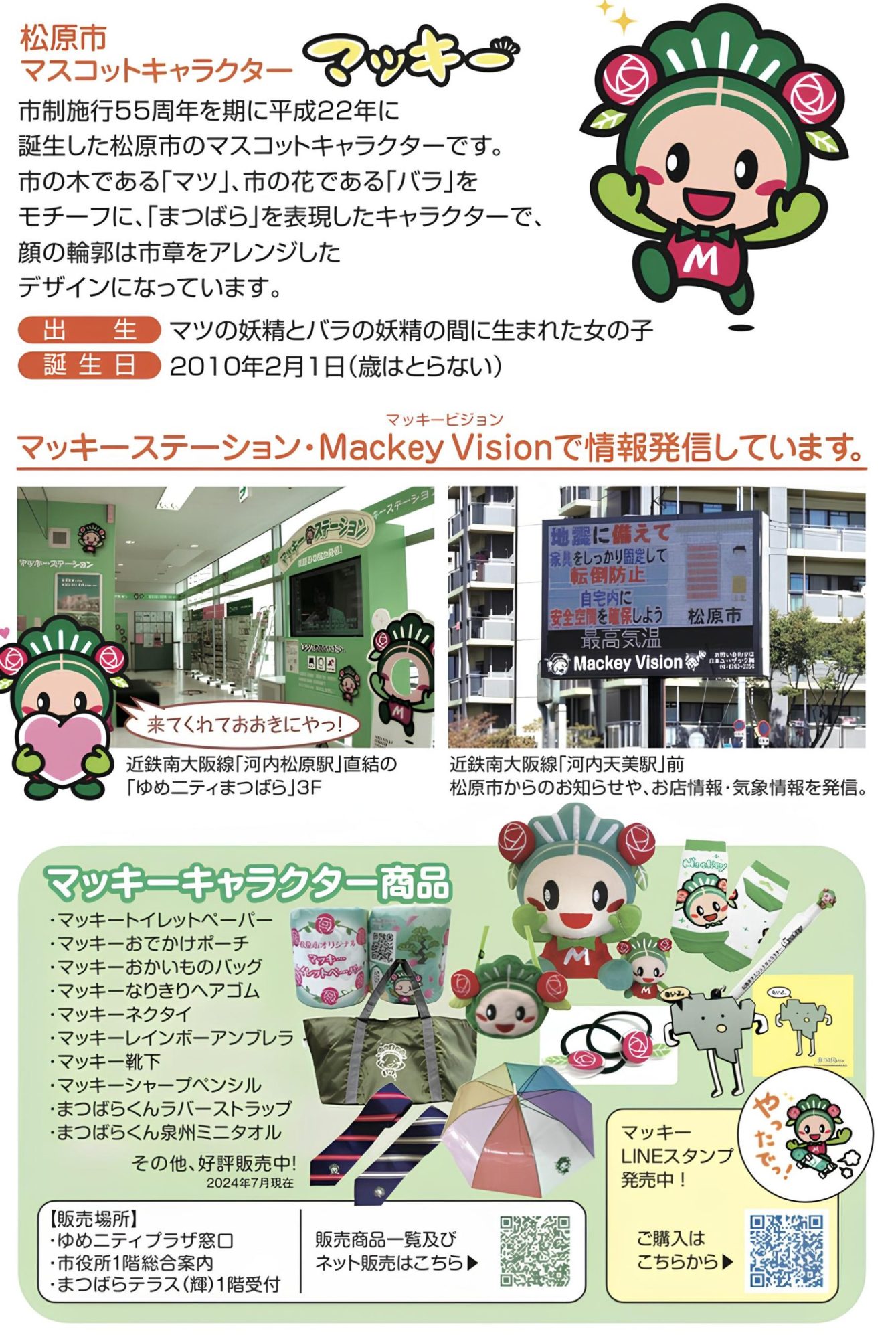 松原の人気者といえば、市の魅力を全国に発信するキャラクター マッキー。イベントやSNSで活躍し、子どもから大人まで幅広い世代に愛される存在です。
