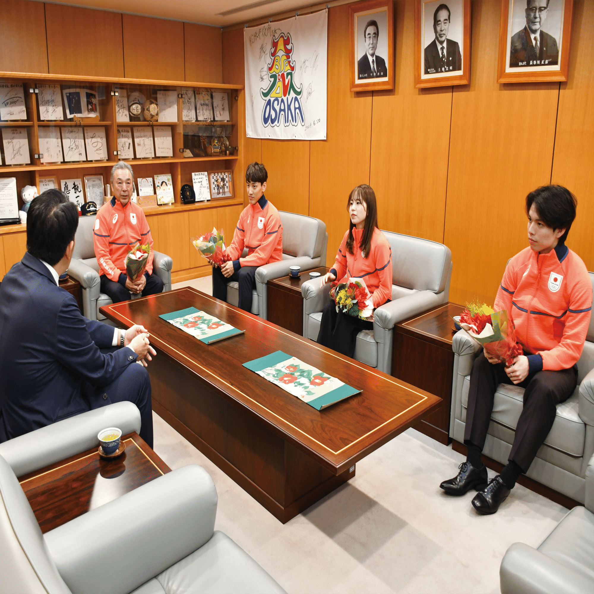 澤井市長からは「スポーツのまち松原市にゆかりのある選手が3人も出場されることはとても素晴らしいことです。松原市からミラノ・コルティナへ熱いエールを送り続けながら全力で応援しています」と激励のメッセージが送られました。