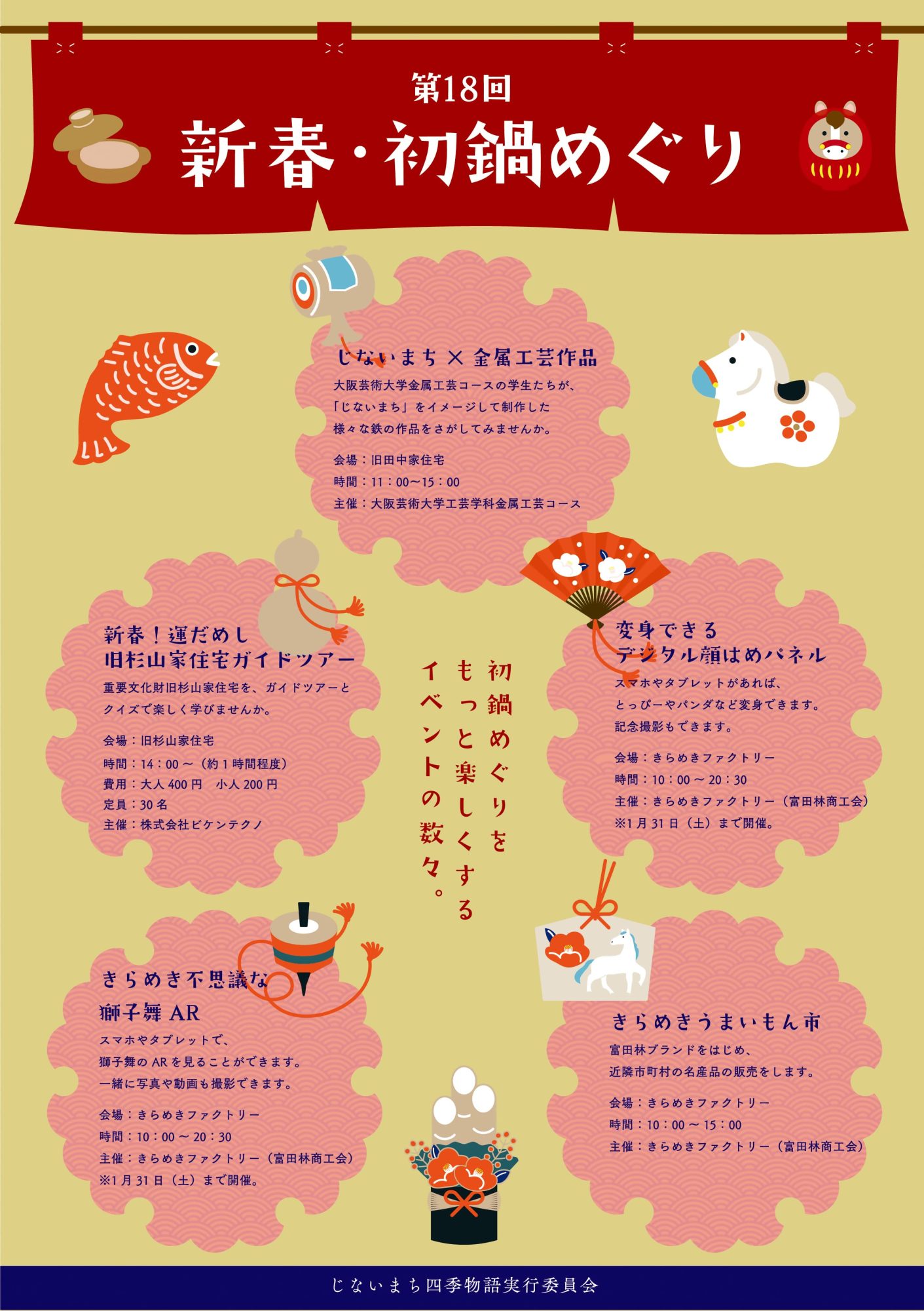 その新春・初鍋めぐりはお正月の余韻の中で、歴史ある富田林寺内町の「冬」のたたずまいを感じながら地域の方々が振る舞う鍋料理などを味わう催しです。
