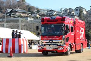 出初式は、消防団員、消防職員、防災関係者が、「今年一年、地域を守る」という決意を新たにし士気を高めるとともに、住民の皆さんに、防火防災の意識向上、及び消防行政へのご理解をいただくため、毎年1月初旬の日曜日に開催しています。