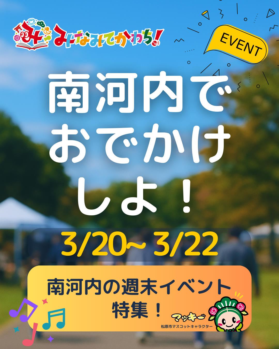 【#南河内でおでかけしよ!】3/20〜3/22の週末イベント特集