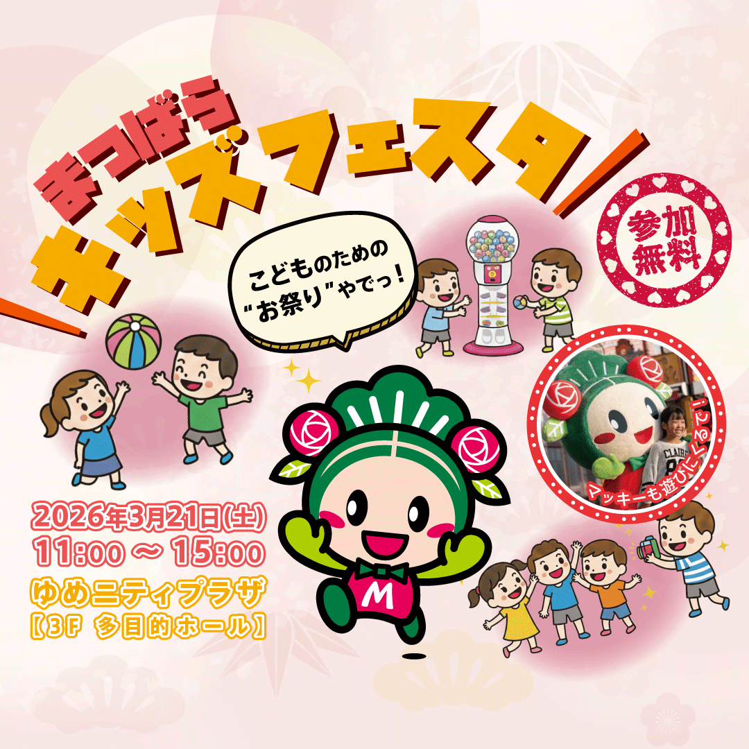 昨年も大人気だった「キッズフェスタ」が、今年はゆめニティプラザにやってきます!