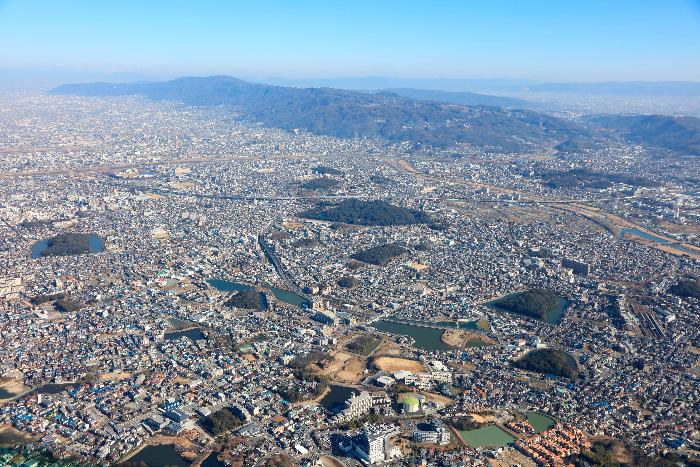 唐櫃山古墳・允恭天皇陵古墳(スタート)⇒鍋塚古墳⇒仲姫命陵古墳⇒古室山古墳・赤面山古墳⇒応神天皇陵古墳外濠外堤⇒墓山古墳・野中古墳⇒羽曳野市役所(ゴール)