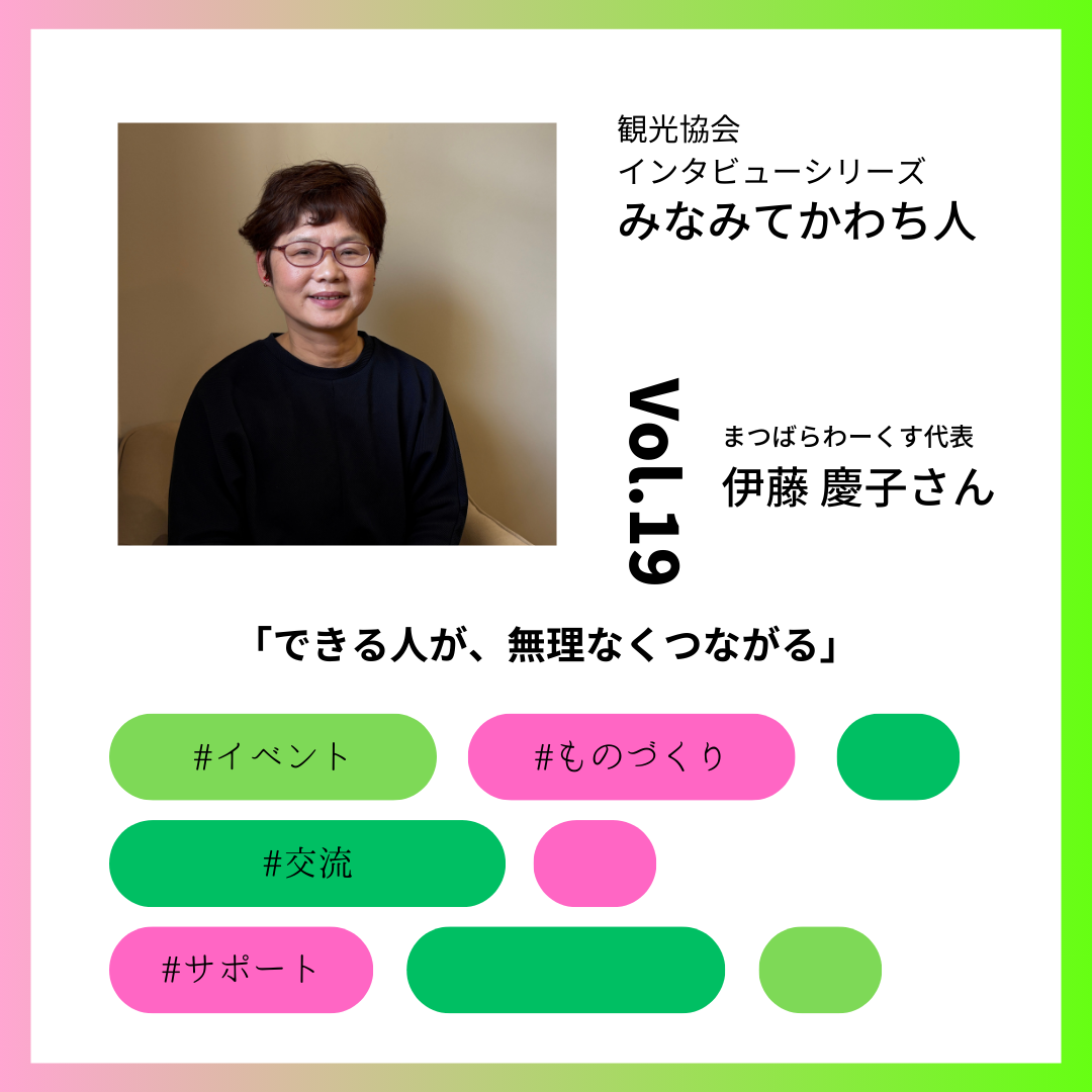 松原市を拠点に、親子ワークショップやハンドメイドイベント、福祉につながる活動まで幅広く展開している市民団体「まつばらわーくす」。その中心で人と人をつなぎ続けているのが、代表の伊藤さんだ。